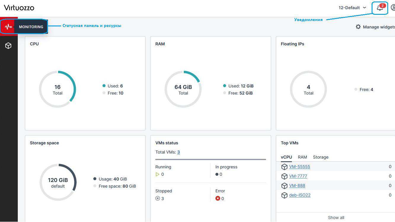 Главная страница CMP (Cloud Management Platform):