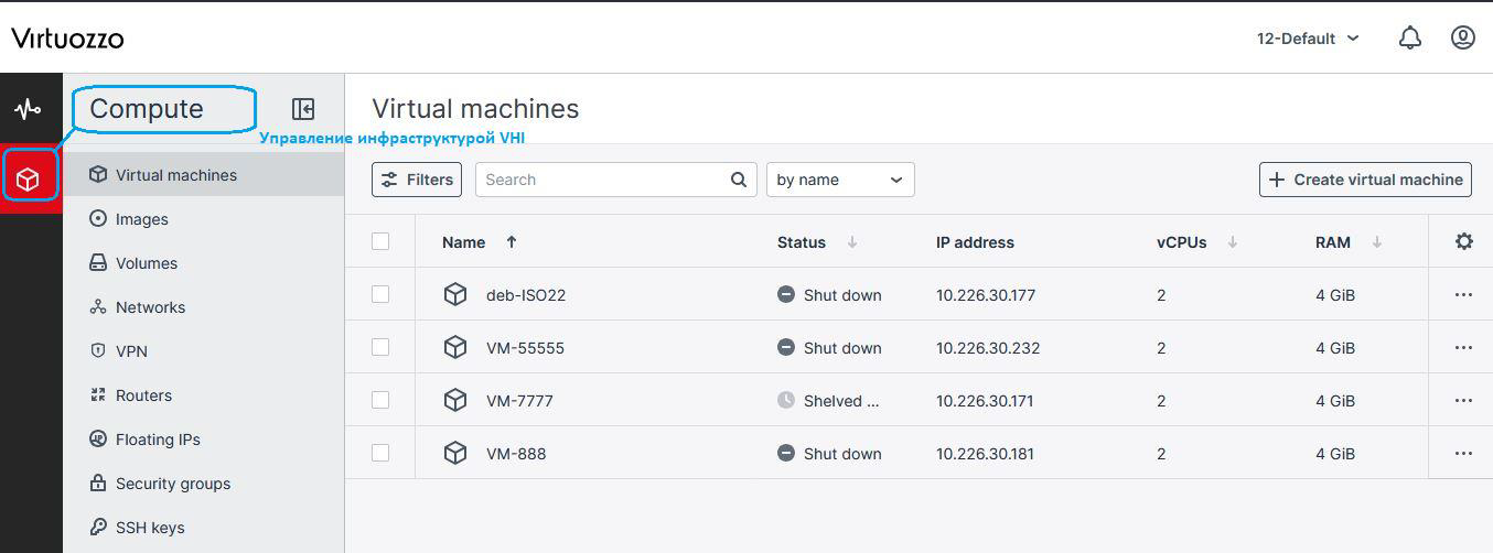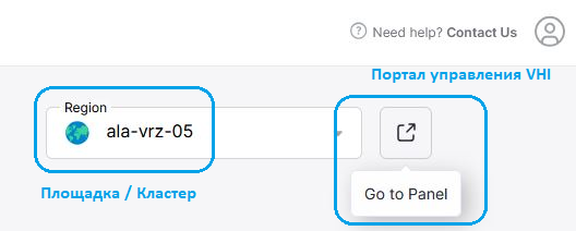 Если ваши ресурсы располагаются на нескольких площадках, не забудьте выбрать “Region” перед переходом в VHI.